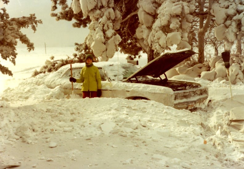 That snow barely fit the definition of snow. It was grey, mixed with South Dakota dirt and beaten into the consistency of talcum powder. It packed tight, deep, and high. Drifts exceeded 12 feet in some areas. And it stuck around for a long, long time. Somehow tunnels were cut through the snow creating canyons and we drove to and from work on cobblestone of packed snow/ice for more than a week until it wore smooth.